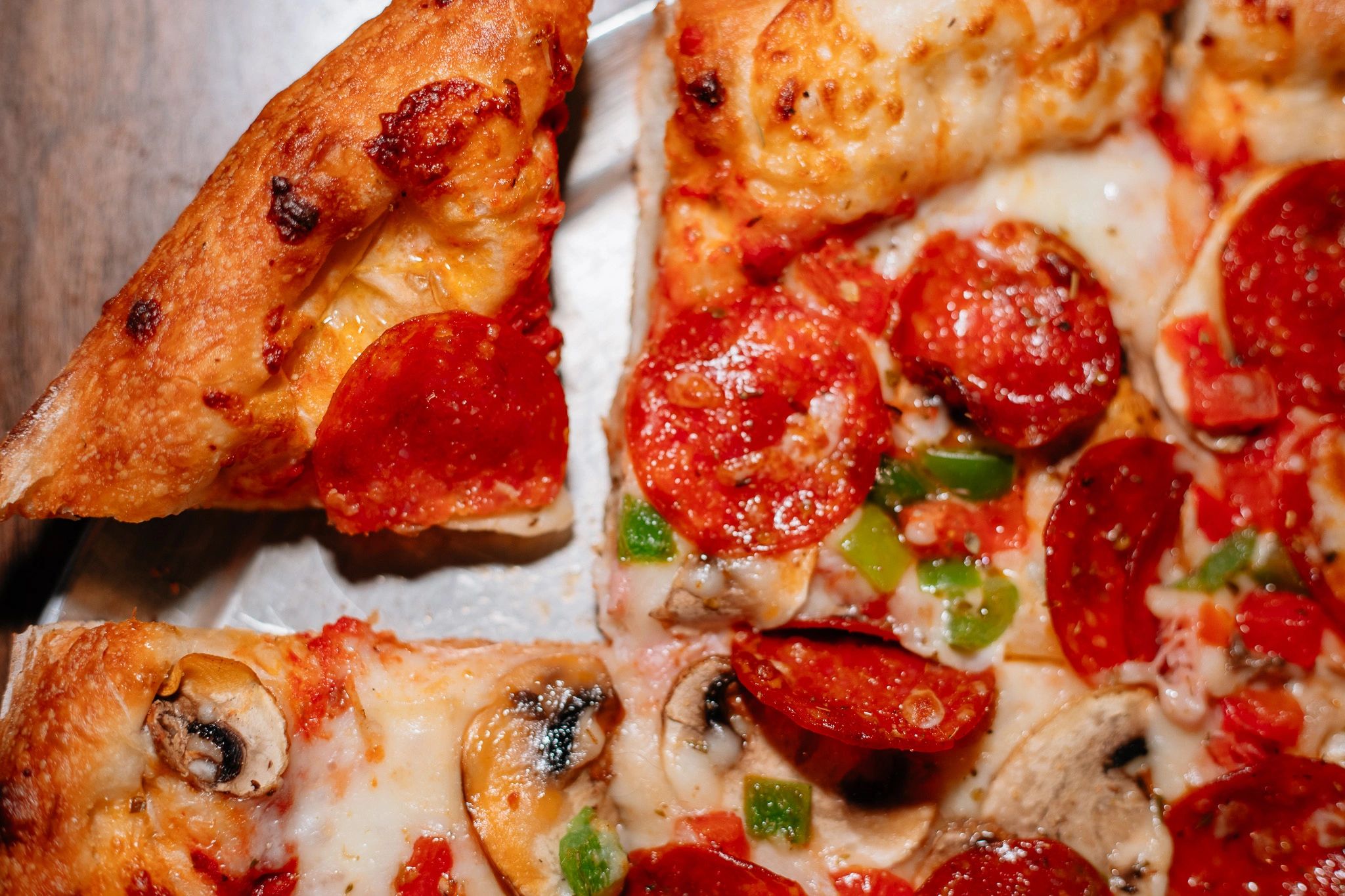 Pepperoni, ham, mushroom, green pepper, onion, and tomatoes